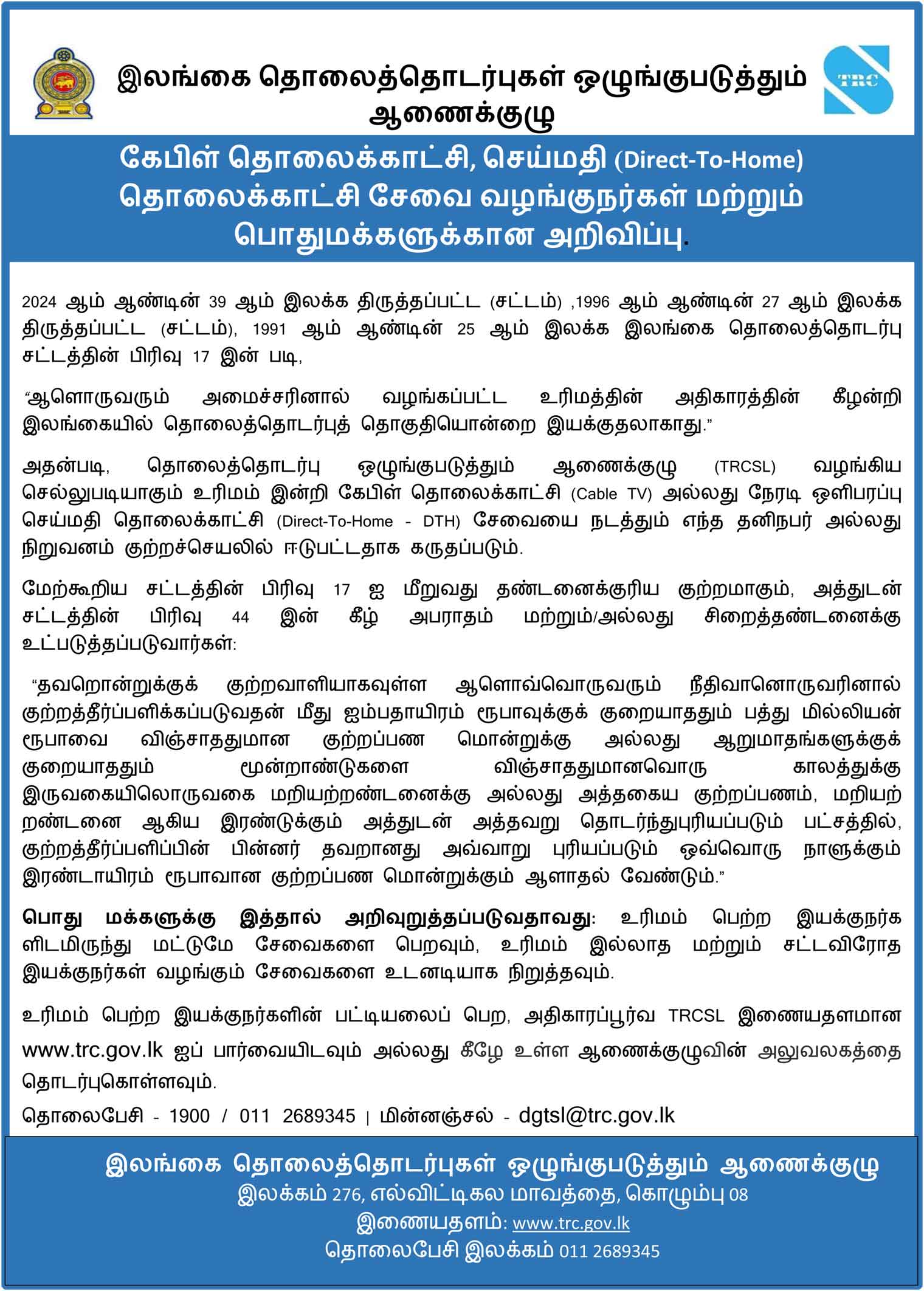 Memorandum of Understanding between Sri Lanka Police and TRCSL...