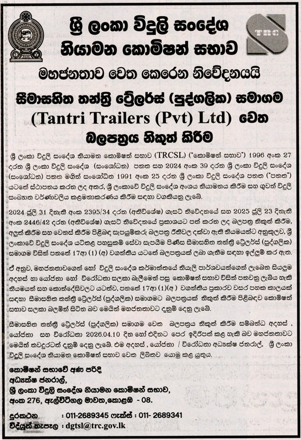 Issuance of the Licence of Tantri Trailers (pvt) ltd.